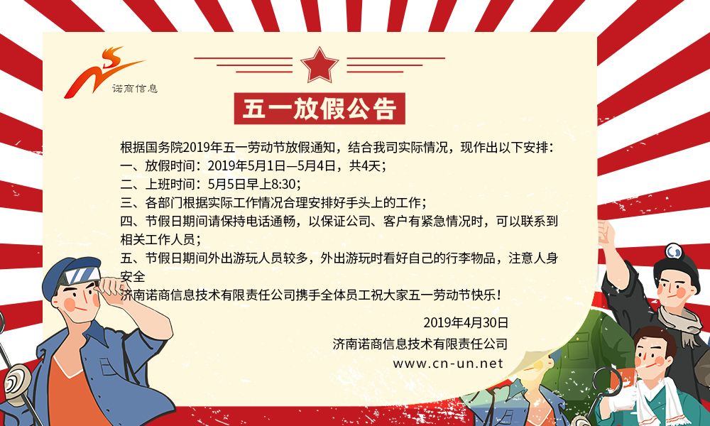 鑫鑫諾商五一放假通知!